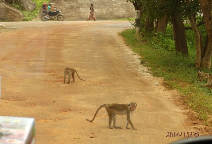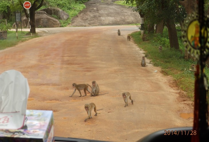 И вот некоторое время спустя мы снова у нашего буса и снова в путь...в Дамбуллу, где нас жали пещерные храмы.... Когда выезжали из Сигирии дорогу нам перекрыли обезьяны попрошайки, а в кустах мы увидели даже варана.