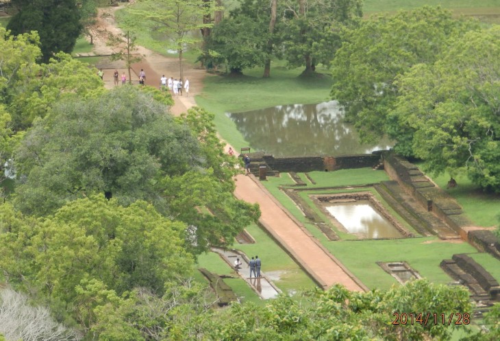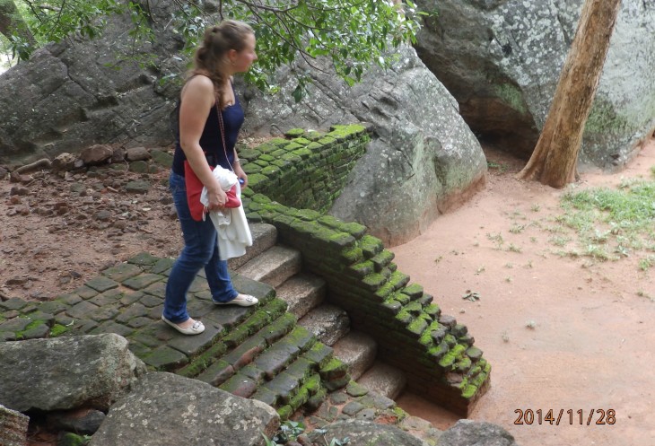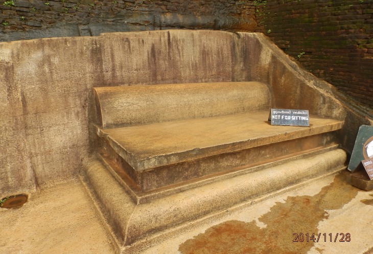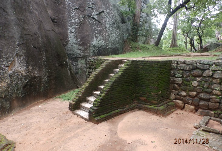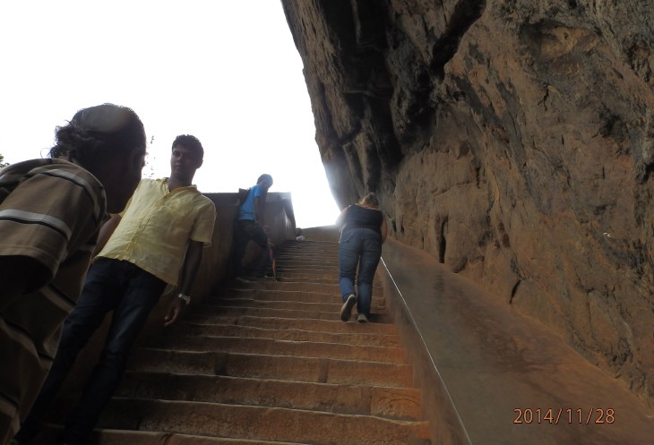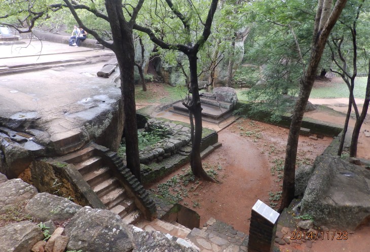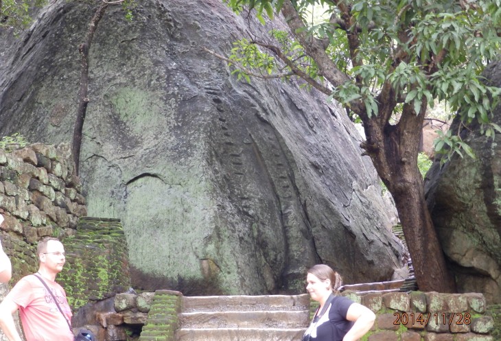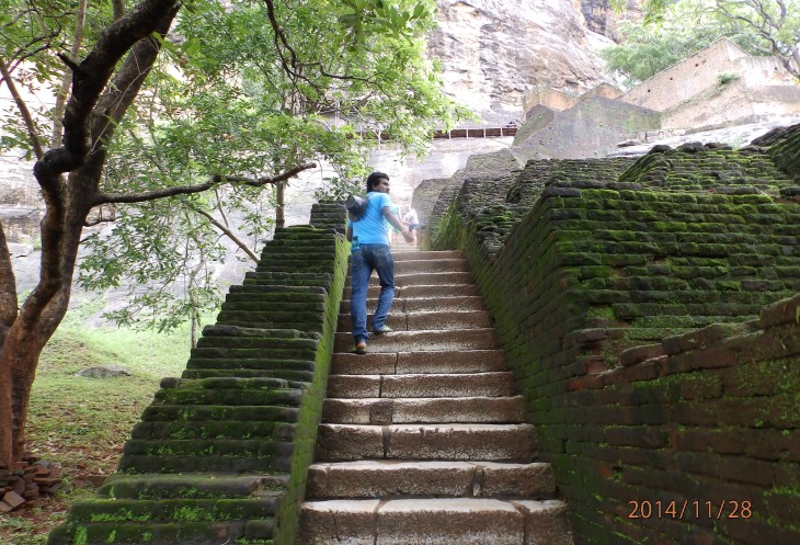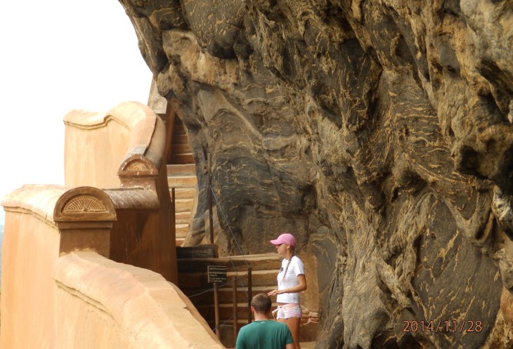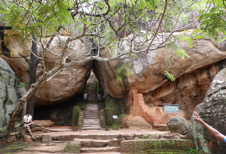 Согласно его словам когда то по всему периметру были прокопаны глубоченные рвы, наполненные водой и в них жило огромное количество крокодилов, эдакий природный запор от нежелательных гостей. А все потому, что у короля, забыл как его имя, было два сына и старший должен был востать на трон после смерти отца. Но младший сын Касапа пожелал править страной и убил своего отца, его брат же успел убежать в соседнюю Индию. Касапа, боясь нападения брата нашел вот это место и построил на нем свой дворец, который состоял из нескольких ярусов, вершиной которого была так называемая неприступная Цитадель на скале высотой более 300 метров и которая действительно была неприступной. На этих ярусах он проживал в зависимости от погоды, то опускаясь на плато, то обратно поднимаясь на скалу, вход на которую вел через пасть льва, в последствии эту скалу назвали Львиной.