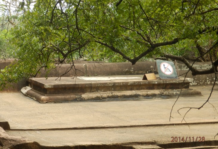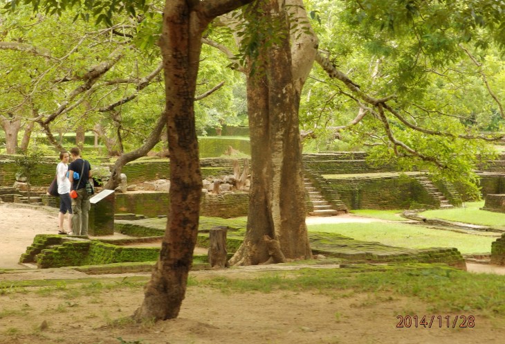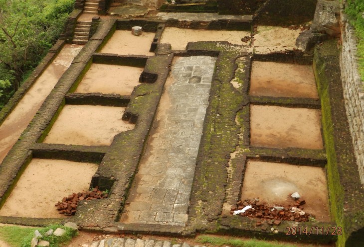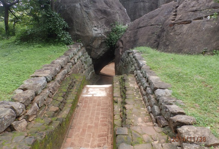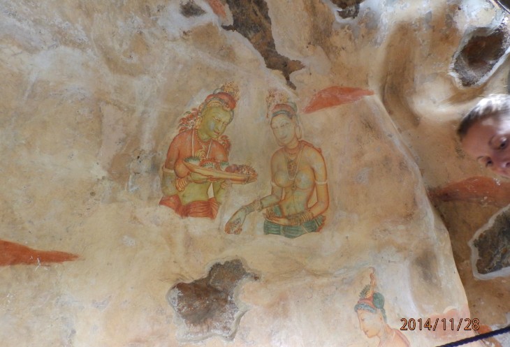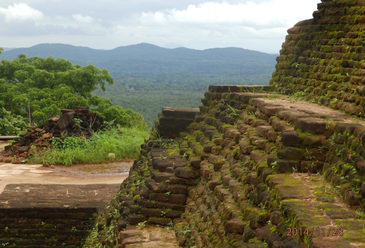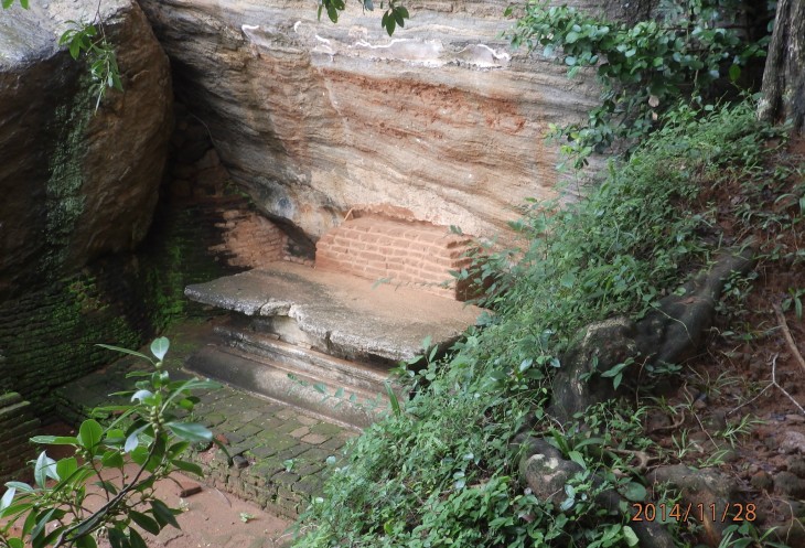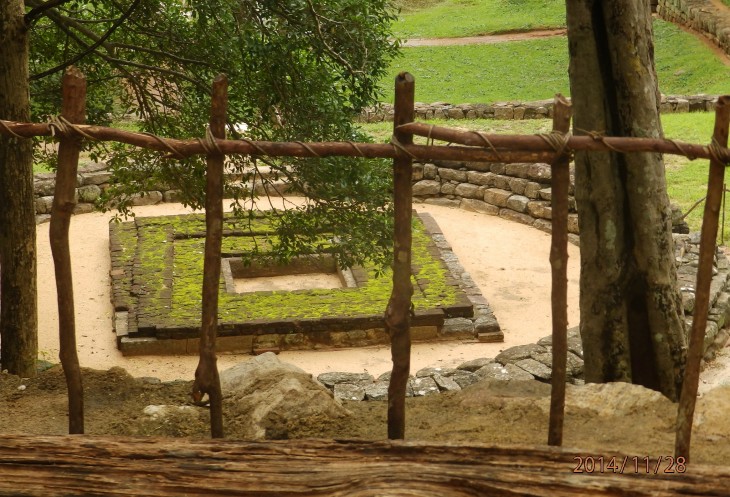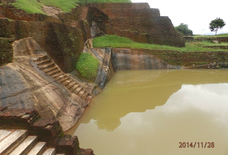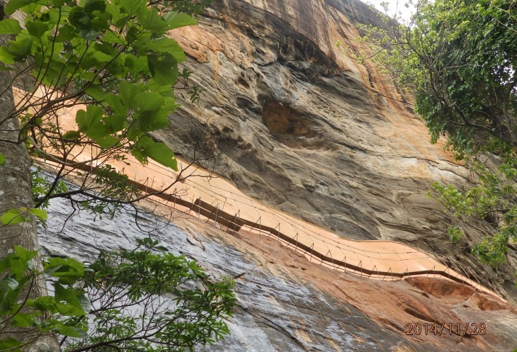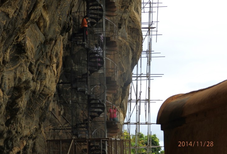 Согласно его словам когда то по всему периметру были прокопаны глубоченные рвы, наполненные водой и в них жило огромное количество крокодилов, эдакий природный запор от нежелательных гостей. А все потому, что у короля, забыл как его имя, было два сына и старший должен был востать на трон после смерти отца. Но младший сын Касапа пожелал править страной и убил своего отца, его брат же успел убежать в соседнюю Индию. Касапа, боясь нападения брата нашел вот это место и построил на нем свой дворец, который состоял из нескольких ярусов, вершиной которого была так называемая неприступная Цитадель на скале высотой более 300 метров и которая действительно была неприступной. На этих ярусах он проживал в зависимости от погоды, то опускаясь на плато, то обратно поднимаясь на скалу, вход на которую вел через пасть льва, в последствии эту скалу назвали Львиной.