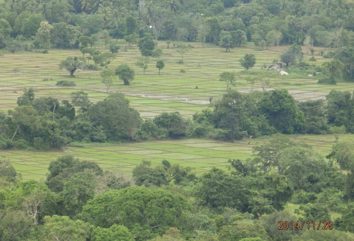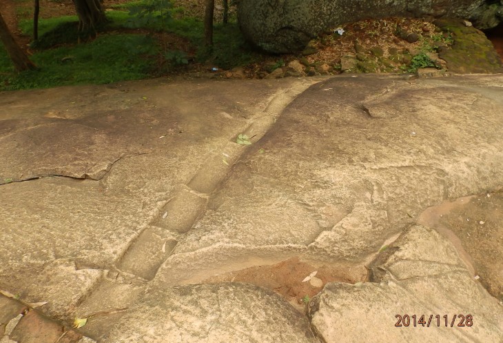 Это место находиться в природных болотах и подступ к скале только один - через турестический мостик. Как то сходить "на халяву", как объяснил нам Лашан, не удастся. Дело в том, что эта монолитная скала из гранита находиться среди природных болот этой местности и людям пришлось лишь малость подправить рвы и пустить воду в нужные каналы.