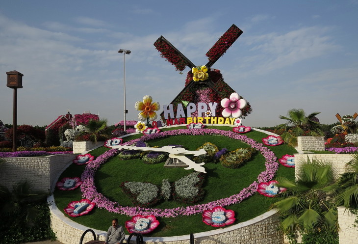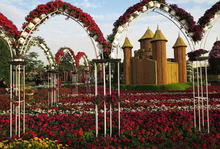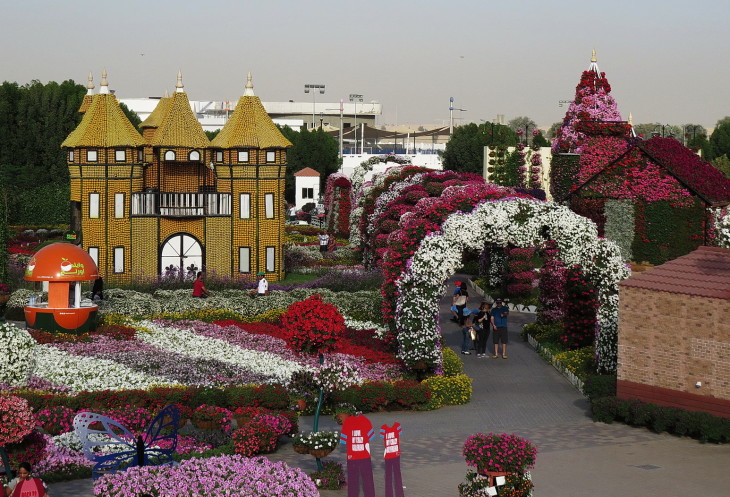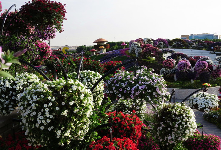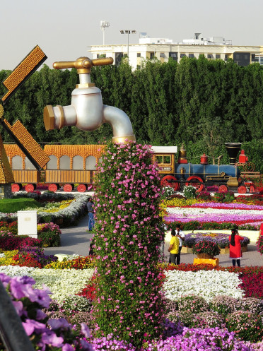 Dubai Miracle Garden работает по будням с 9 до 21 часа, по выходным с 9 до 23 часов. Нашла в интернете: входной билет в декабре 2015 г. стоил 20 дирхам. А мы в марте 2016г. заплатили, как я уже написала, по 30 дирхам с носа.