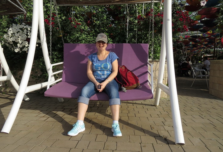 Потом зашли в кафе, перекусили, попили- Лена кофе, я- чай, и двинулись дальше в сад цветов. По пути Лена озвучила одну свою мысль: после бабочек не жду сильных впечатлений, но раз приехали, то надо сходить.
