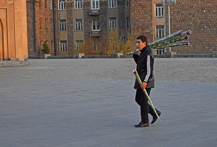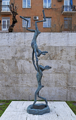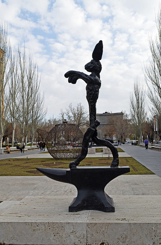 Там рядом,на ул. Абовяна,памятник старичку с розами.Мы еще подумали,что какому то продавцу цветов)).Но ,оказалось,что этот старичок, Кара-Бала (в переводе с турецкого "Черный мальчик") ,вполне реальный персонаж с печальной историей,живший в Ереване в советское время.Он дарил влюбленным и девушкам цветы. В память о нем и был установлен этот памятник.