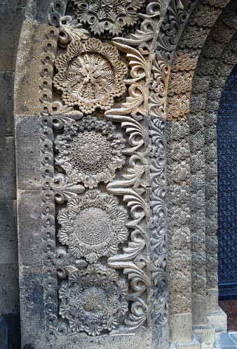 Мы стояли у музея и разглядывали резьбу на входе.