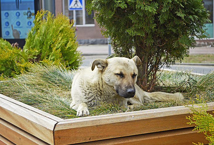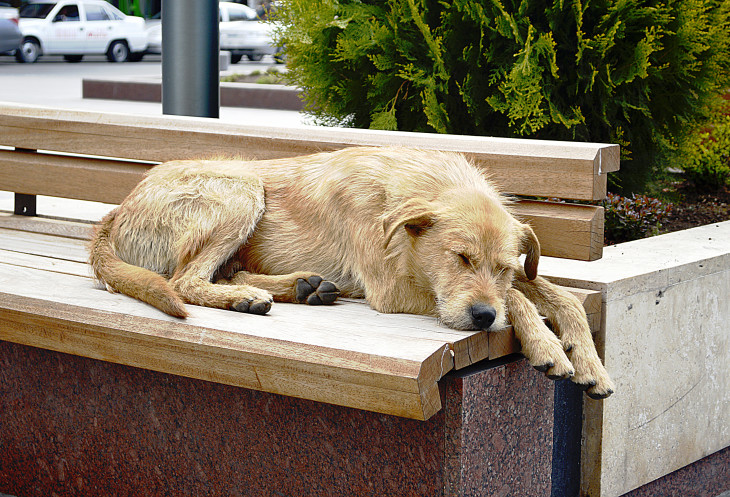 И собаки))) ...удобно устроившиеся на лавочках и клумбах.)))