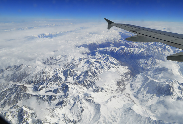 Еще два часа с перекусом и под крылом самолета раскинулись заснеженные Кавказские горы .Красотища!