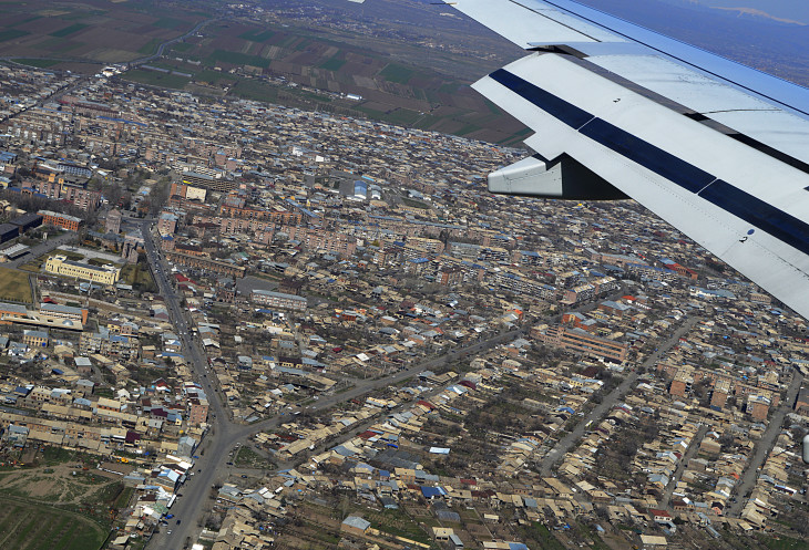 Снижаемся над Вагаршапатом .В этом городке находится главный духовный центр страны, Эчмиадзинский монастырь.