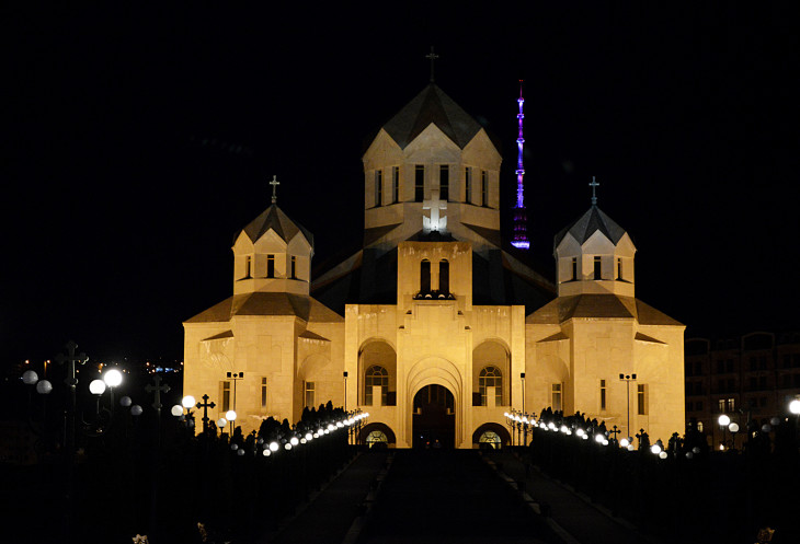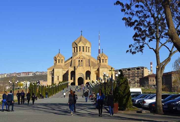 Также каждый день мы ходили мимо Кафедрального собора св.Григория Просветителя.Построили этот собор совсем недавно,каких то пятнадцать лет назад.Выглядит очень мощно и красиво.