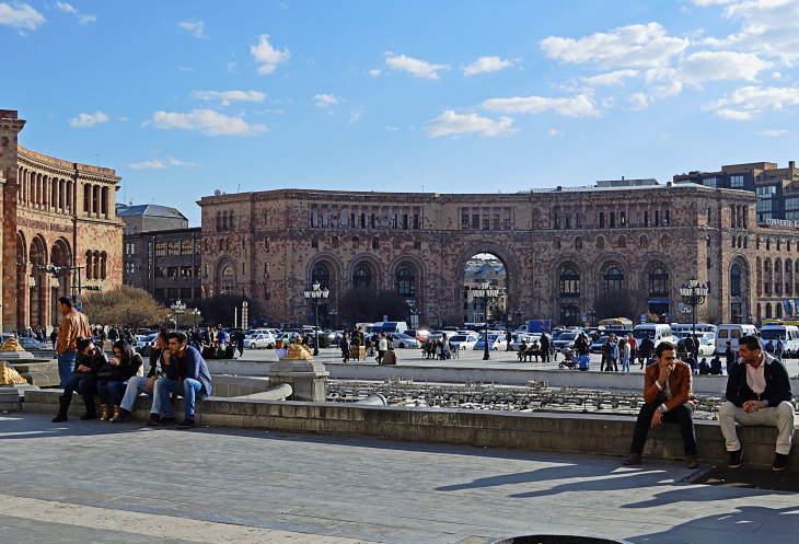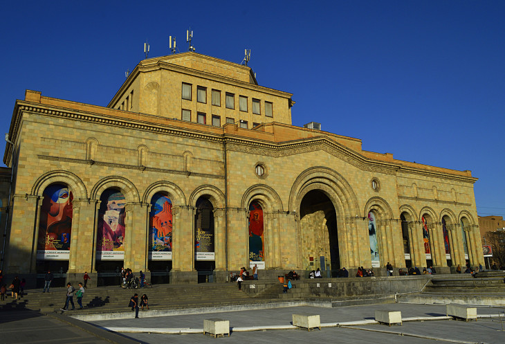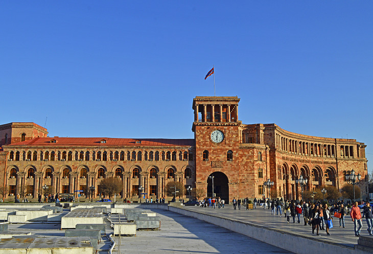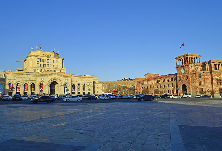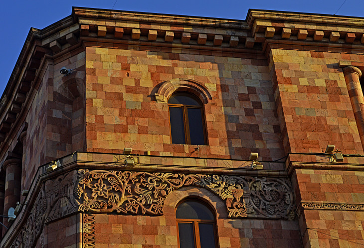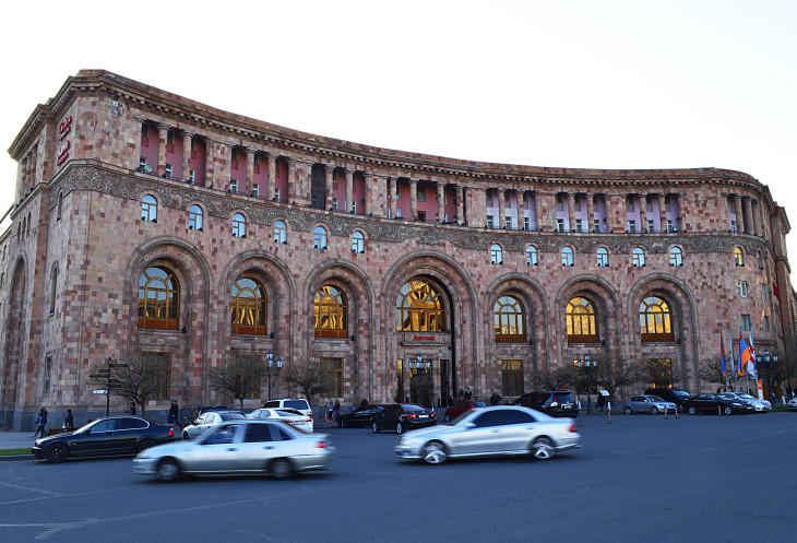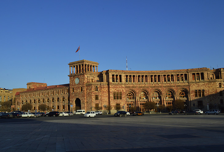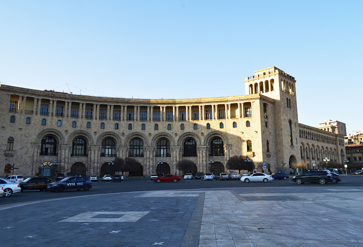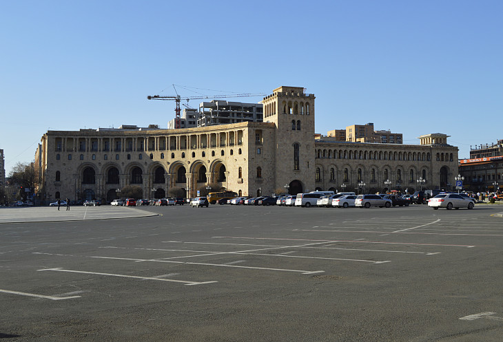 Площадь Республики одно из самых красивых мест в Ереване.Пять основных зданий,окружающих площадь, облицованы розовым туфом и украшены резьбой.Это здание Правительства,