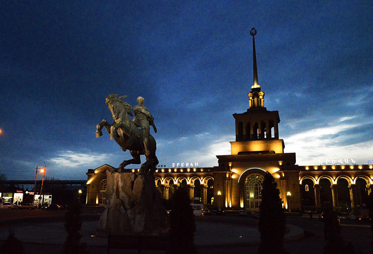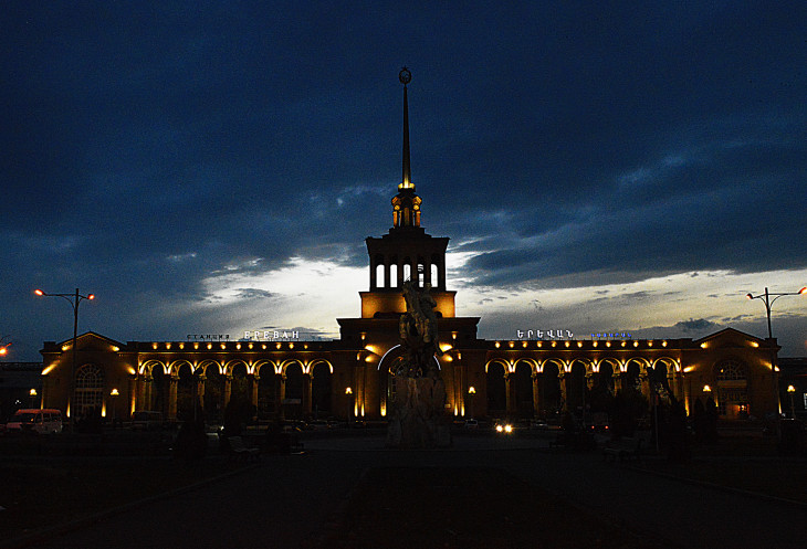 Как то вечерком,мы прошлись до железнодорожного вокзала.Находится он на площади Давида Сасунского,позади памятника этому национальному герою.