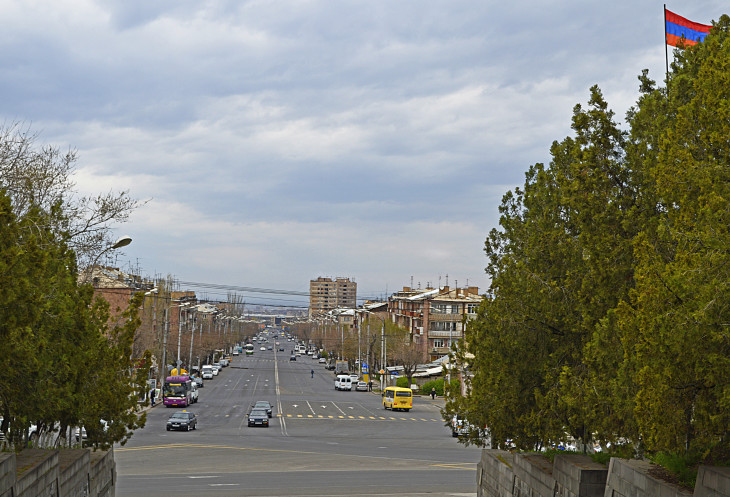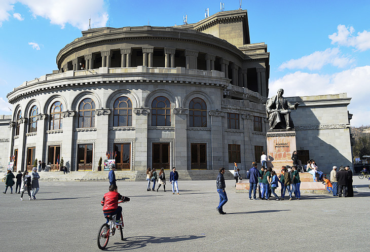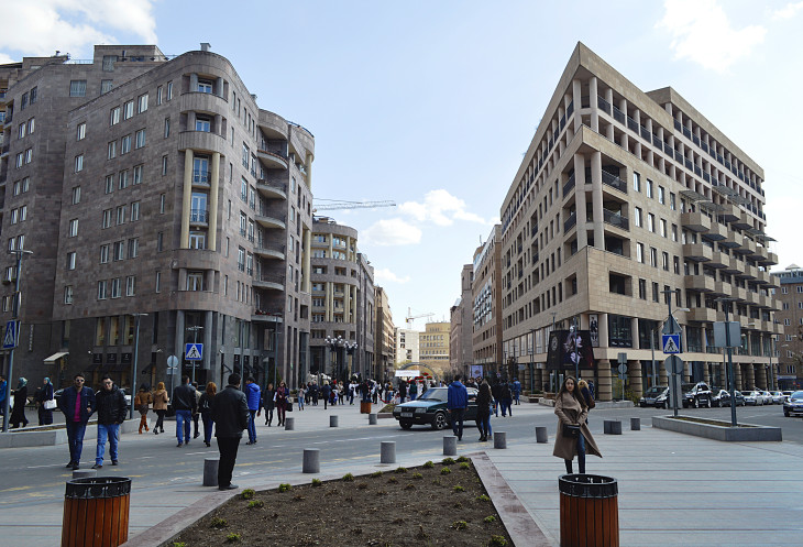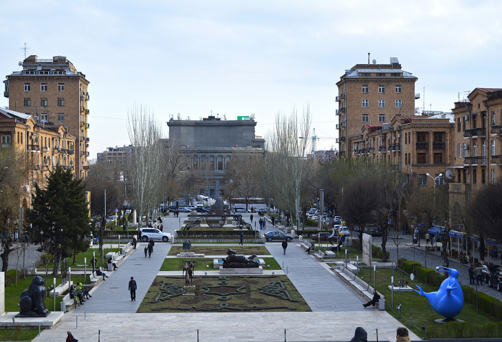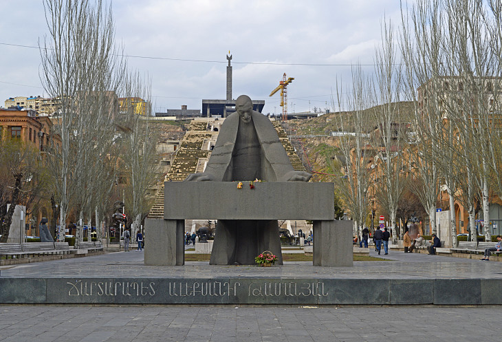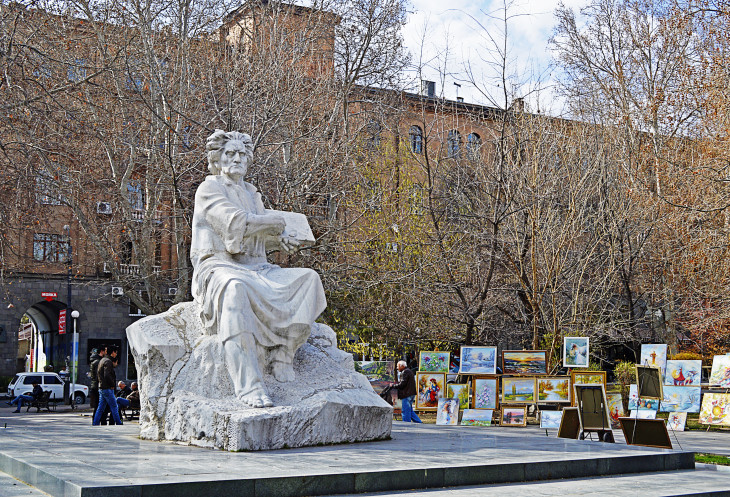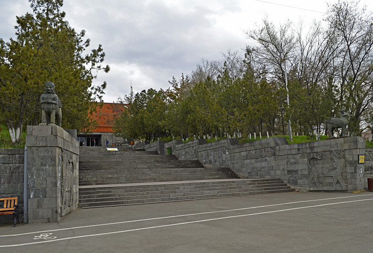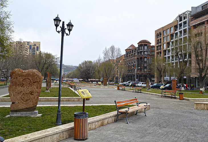 Все начинается с небольшого сквера,в начале которого стоит памятник А. Таманяну.Александр Таманян тот самый архитектор,который и перестроил этот город в советскую эпоху.