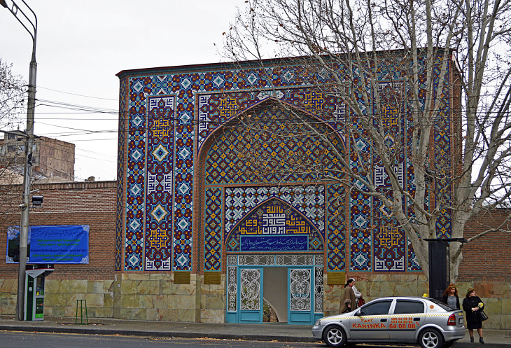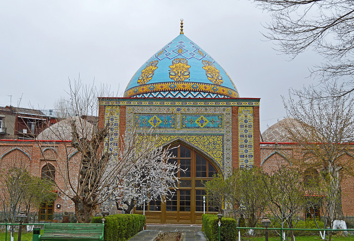 Голубая мечеть построена в 1766 г. тюркским ханом в честь ирано-армянской дружбы (одно из самых старых зданий Еревана).Эта мечеть единственный действующий храм мусульман на территории Армении.Сейчас она отреставрирована (на деньги Ирана) и является духовным центром иранцев в Армении.Из четырех минаретов сохранился только один,высотой 24 метра.Мечеть украшена декоративной плиткой с майоликой.
