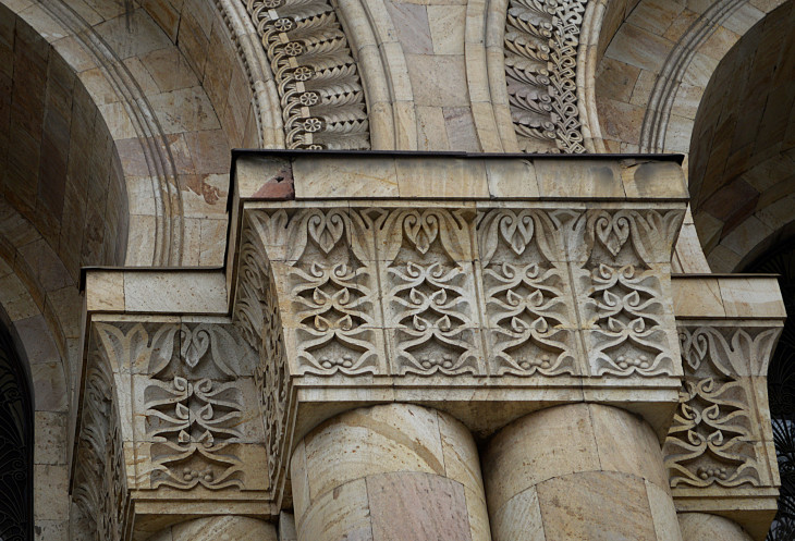 В зависимости от освещения солнцем,здания смотрятся по разному,но всегда красиво.Резьба притягивает взгляд,можно долго рассматривать растительный узор и восхищаться мастерством резчика.