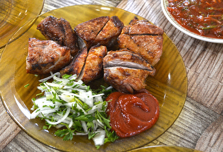 По ресторанам мы не ходили,а ужинали ,в основном ,в маленьком кафе возле крытого, продуктового рынка "Ташир".