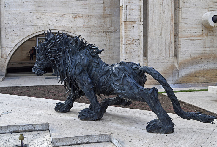 Нам понравилась скульптура льва,сделанная из автомобильных покрышек.Если не знать,то издали он смотрится как металлический))).Сделал его южно-корейский скульптор Джи Йонг-Хо в 2008 году.