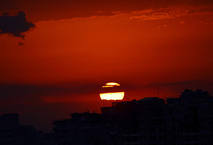 Мы снова вернулись на Каскад. Стоим на верхней площадке и смотрим на закат.