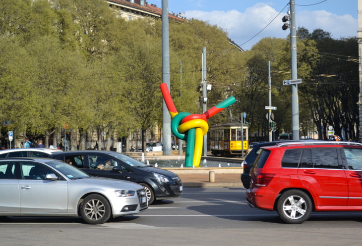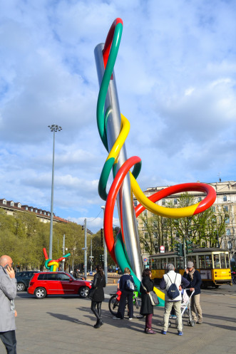 Из Замка Сфорца вполне логично было бы идти гулять по парку Семпионе (Parco Sempione), прилегающему к замку. Но из окна одного из музеев мы увидели совсем рядом еще одну миланскую достопримечательность, на которое хотелось бы взглянуть поближе – памятник «Иголка, Нитка и Узелок», и мы решили сделать небольшой крюк, а уже после того идти в парк.