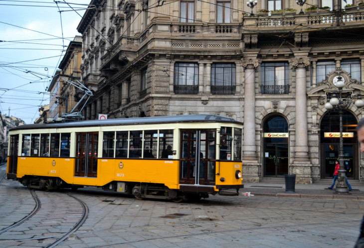 Хоть до площади от арки не так уж и далеко, решено было это расстояние не идти пешком, а проехать на одном из старых трамвайчиков, во множестве курсирующих по Милану.