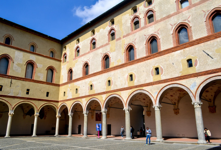За время своего существования замок, как и сам Милан, периодически переходил в руки то к французам, то к испанцам, то к австрийцам, то снова к французам. В промежутках и итальянцам что-то перепадало. Там попеременно размещался то военный гарнизон в 2000 солдат со всеми службами, то очередной правитель со своим двором. Обо всем этом написано во множестве путеводителей, но сам Замок Сфорца сегодня выглядит довольно прилизанным. А история прослеживается лишь по местами выщербленным стенам крепости, да по оригинальным внутренним дворикам.