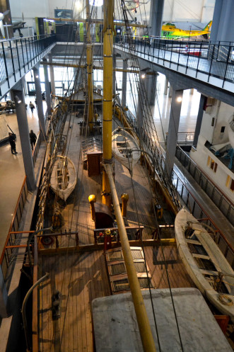 В последнем здании собрана коллекция того, что плавает или летает. Коллекция не особо большая, но интересная. Она включает в себя в частности несколько любопытных летательных аппаратов, учебное парусное судно «Эбе» и фрагмент трансатлантического лайнера «Конте Бьянкомано». Оба судна примерно ровесники. Парусник, построенный в 1921 году, служил верой и правдой до начала 60-х.