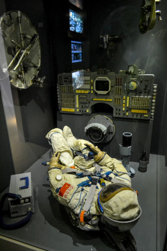 А в небольшой экспозиции, посвященной космосу, можно не только познакомиться с устройством ракетного двигателя, увидеть скафандр одного из советских космонавтов