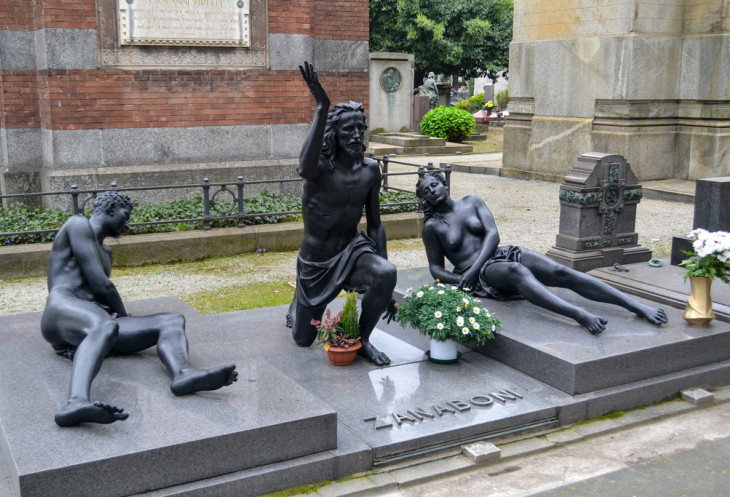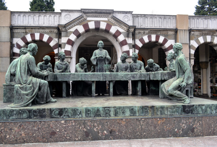 Имеет место даже попытка воссоздать бессмертную «Тайную вечерю» Леонардо да Винчи. Правда, попытка весьма скромненькая. Данная скульптурная композиция является надгробием семьи Кампари – владельцев всемирно известной фирмы по производству алкогольных напитков на основе трав и фруктов.