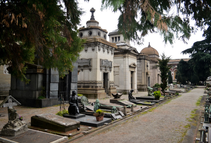 Когда мы ехали в Милан, то моя дочка сказала, что очень хочет попасть в музей скульптур. При ближайшем рассмотрении оказалось, что она имеет в виду Монументальное Кладбище (Cimitero Monumentale) Милана. Я тоже отмечал для себя это место, как обязательное для посещения, и мы все вместе отправились туда сразу после Кафедрального Собора.