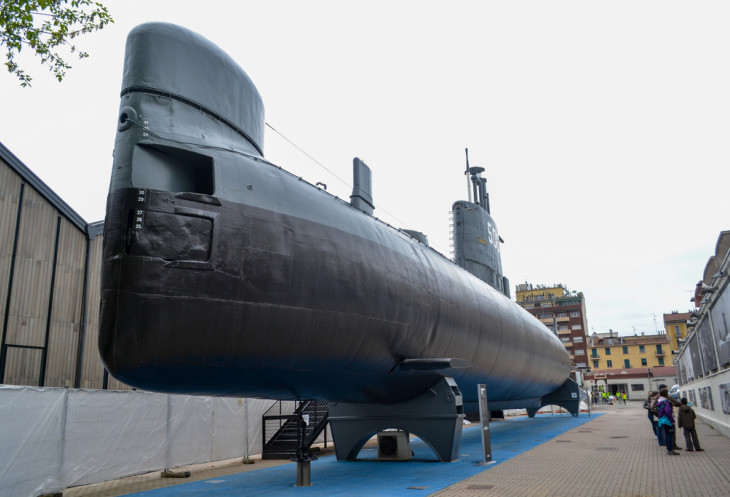 Музей оказался огромным комплексом, состоящим из трех зданий, плюс установленные на улице подводная лодка и истребитель. Подлодка – «Тоти» - первая подводная лодка, построенная в Италии после Второй Мировой войны и спущенная на воду в 1967 году.
