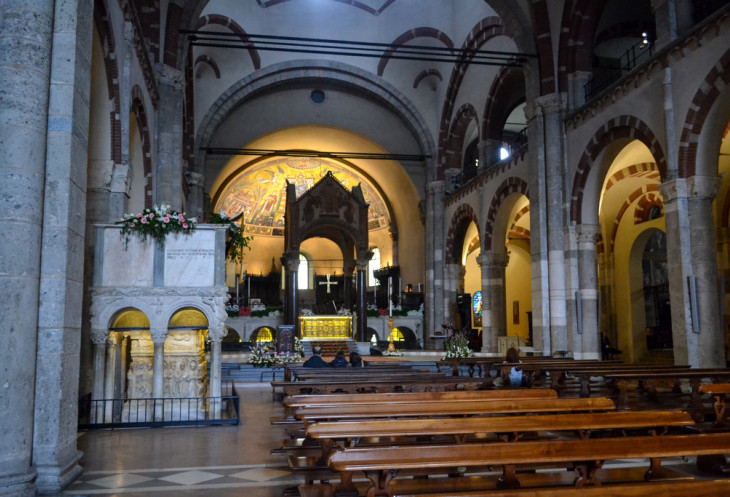 В этой базилике между двумя мучениками Геврасием и Протасием, похоронен и сам Амвросий. Мощи всех троих покоятся под главным алтарем базилики, и их можно увидеть, спустившись по лестнице в специальное помещение.
