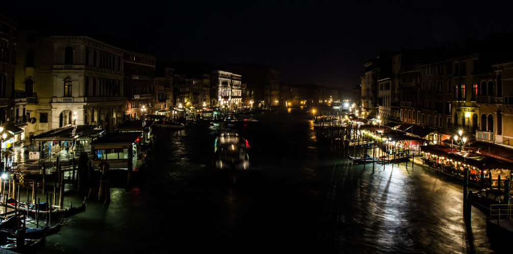 Сказать по правде, меня охватили ощущения, противоположные дневному романтическому настроению. За одним из поворотов я наткнулась на манекен в плаще с косой и в белой носатой маске (днем он меня б не напугал, но в темноте и внезапно вынырнув из-за угла!). В одном из каналов проплывала гондола с гондольером, одетым в темный дождевик, а при взгляде со стороны возникли жуткие ассоциации Харона в черном плаще. Кроме того, где-то отдаленно играла органная музыка (вероятней всего с музыкального заведения или церкви). И все вкупе нагнетало атмосферу еще больше, тем самым зловеще напоминая нам «Вы отсюда не выберетесь»! Может я оказалась в этот момент сильно впечатлительной, но мистическая атмосфера города не давала мне покоя до тех пор, пока мы благополучно не добрались до ж/д терминала.