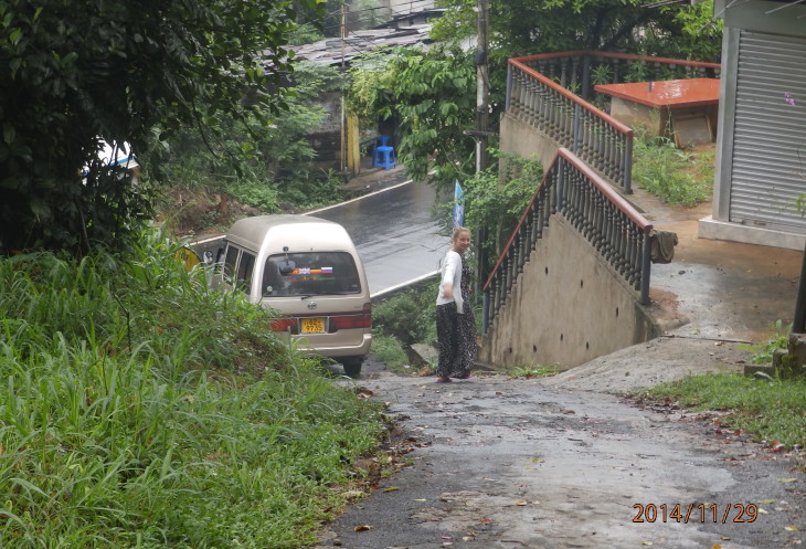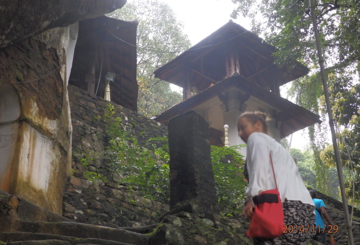 Чтобы добраться до Хиндагалы мы доехали с помощью навигатора на смартфоне, так как Лашан не знал дороги к этому храму, от Канди до Перадении, на развязке напротив госпиталя повернули на юг на Galaha Rd. (в сторону университета) и проехали примерно 4 км до того места, где дорога приближается почти вплотную к реке Махавели Ганга. В этом месте навигатор показал, что мы на месте хотя в действительности мы все еще находились на трассе. Поспросив у местных дорогу к храму мы увидели метрах в 10 позади микроавтобуса справа узенькую дорожку, которая круто забиралась вгору, туда мы и направились....ну тут мы уже сошли с микроавтобуса, решили не рисковать и пошли к храму пешком. Лашан с водителем смеялись с нас, но как говорится безопасность важнее. Площадка остановки автомобилей находилась метрах в 200-хстах по дороге в крутую горку, но мы не пожелели о том, что пошли пешком. Виды вокруг потрясают.