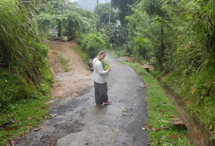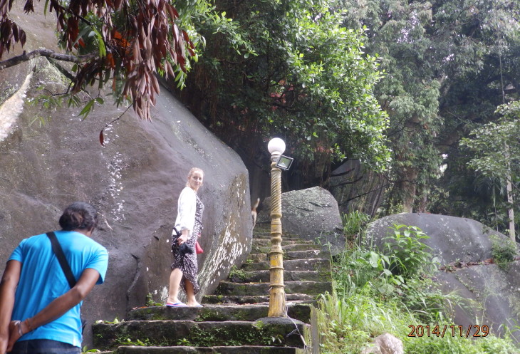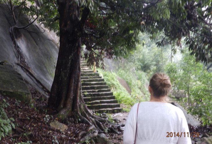 Когда поднялись, нас уже ждали Лашан и мужчина средних лет, который является хранителем ключей от храма. Он и повел нас к храму по узенькой дорожке из ступенек. Дорога пролегает через девственные джунгли горы и от этого становится лишь краше.