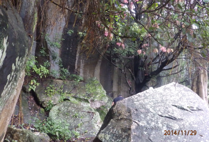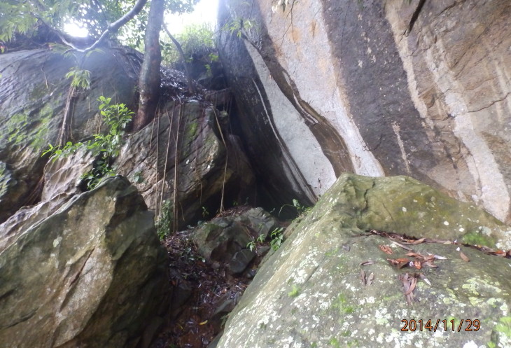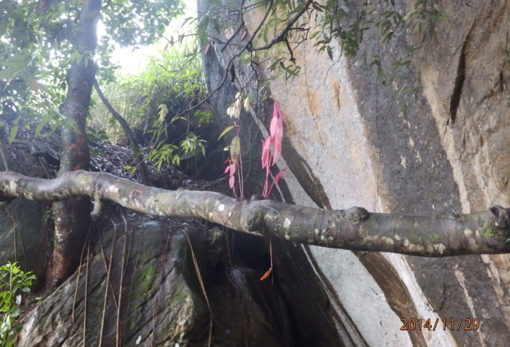 Подъем от дороги заканчивается на небольшой грунтовой площадке у подножья скалы. Отсюда вверх к пещерному храму идет еще одна каменная лестница, состоящая из нескольких крутых пролетов и площадок, а влево вдоль скалы – тропинка, ведущая в расположенную рядом деревню.