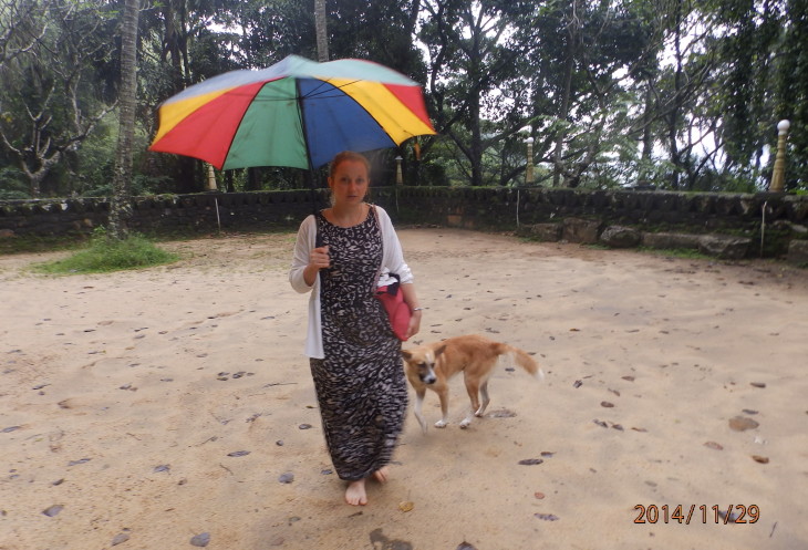 Выйдя из храма жена пошла к краю площадки, на которой расположился храм полюбоватся протекающим ниже с горы ручейком. Там к ней пристал пес, которого она покормила и он стал ее лучшим другом.