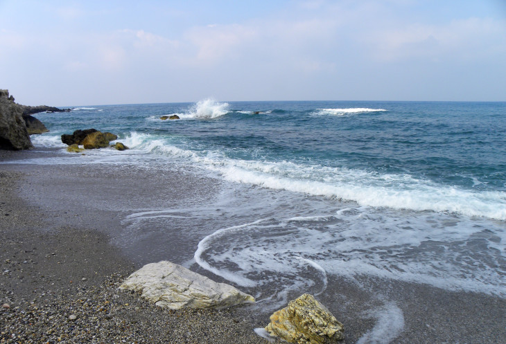 Волны играют одна с другой. Разбежавшись, набегают на камни и прибрежные скалы и с веселым хохотом разбиваются о них. И только мелкие брызги, переливаясь на солнце яркой радугой, возвращаются в море. И оно принимает их в свои объятья, как добрая мать.