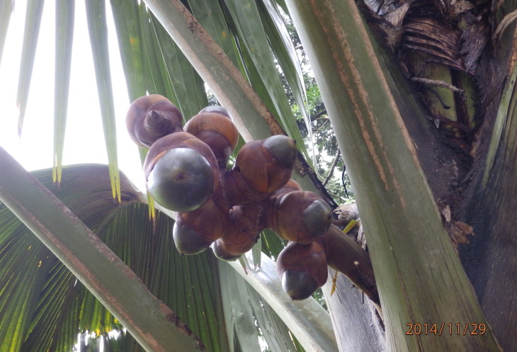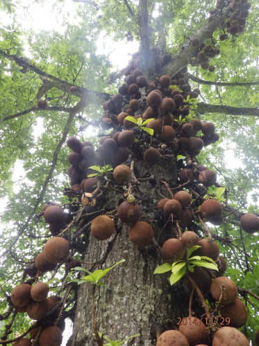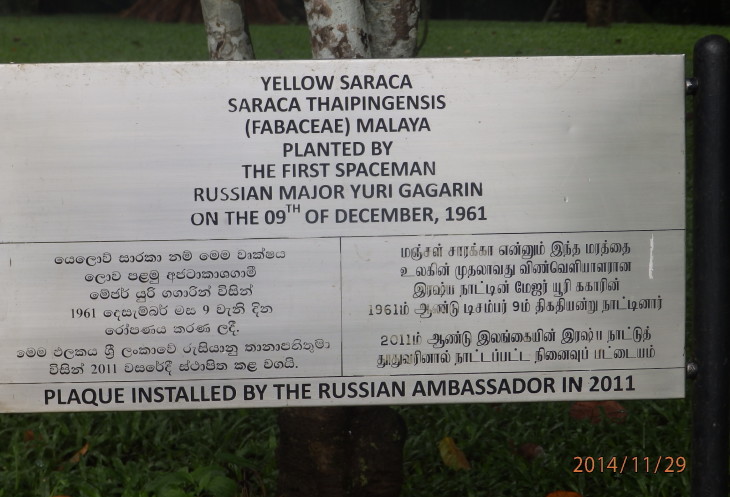 Не спеша мы продвигались по саду, любуясь красотами ландшафтов и вдыхая чистый, местами пьянящий голову от изобилия цветов воздух. Вскоре мы подошли к одному известному среди бывших граждан СССР дереву - это дерево желтой сараки, которое посадил первый космонавт Юрий Гагарин, да, да, он не только в космос летал, но и посетил этот красивый остров да еще и в память о себе посадил это дерево. Кстати, после смерти космонавта это дерево почти не растет, мистика какая то, но на 2014 год это дерево имело такой вот вид!!!