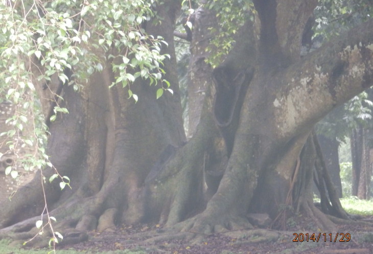 Пройдя алею кубинских пальм мы увидели слева от себя огромные деревья. Его ветви переплетались между собой, делая это дерево каким то сказочным персонажем. Когда мы узнали от гида, что же это за дерево - мы попросту онемели....ведь как оказалось, это дерево растет у нас дома в горшке. Высота его приблизительно 1 метр и это обычный вазон....ан нет, оказывается у нас дома растет настоящий эсполин и долгожитель. Ну, не буду Вас больше мучать, так и быть, озвучу его название - это фикус Бенжамина, тадам!!!! Кто знает этот вазон, тоже впадет сейчас в шок. И между прочим, этим фикусам в саду по несколькку сот лет и они просто необъятны, смотрите сами: