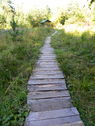 Деревянные дорожки, бережно уложенные заботливыми руками, ведут к мысу влюбленных. Это небольшая беседка, окруженная со всех сторон водой. Прекрасное место для уединения!