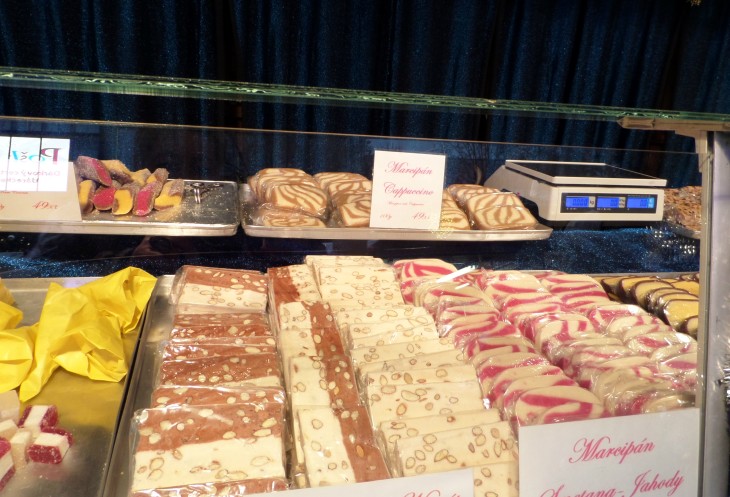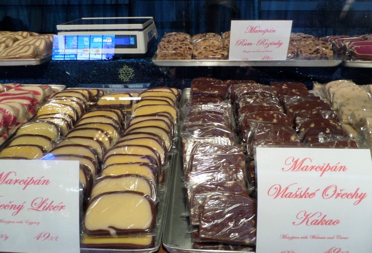 А вот на Вацлавской площади под названием "марципаны" предлагают что-то вроде нашего шербета, большой ассортимент - с вишней, смородиной, орехами, какао - может, и вкусно, но совершенно не то! В них нет благородства, присущего миндальным батончикам.