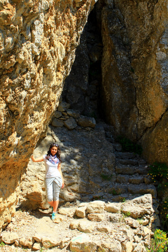В скале мы нашли целую систему ущелий — таврских убежищ. До наших дней хорошо сохранились система укрепленных убежищ в виде лестниц.