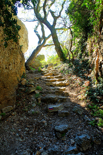 Испытав туристический азарт, мы решили пройти по лестнице тавров не смотря на то, что ступени были массивными, но не внушающими доверия. Всё новые ущелья, смотровые площадки и вершины вырастали как из-под земли, поэтому мы не могли остановиться и исследовали тропу дальше, уходя вглубь. Местами хорошо сохранившаяся лестница вела то круто вверх, то через узкие ущелья. Если на минуту представить, что лестница цела и тропа сплошь усеяна растительностью, то становится ясно, почему считалось, что тропу проходят Боги.