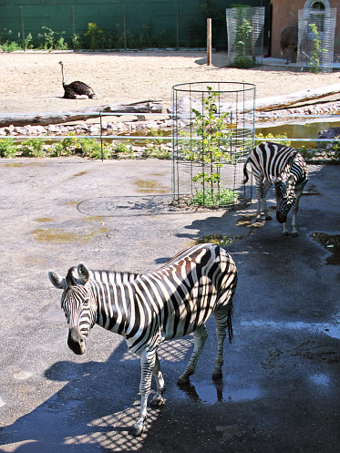 И вот мы добрались до раздела "Африка", куда и поселили рядом со страусами ту самую парочку зебр.