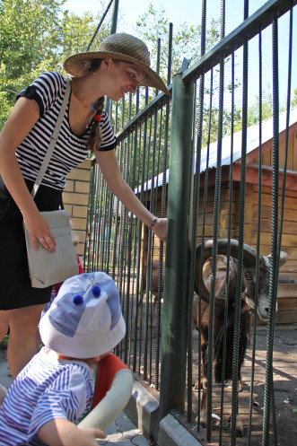 Под конец мы зашли в раздел "Русская деревня" и купили корм для животных. Но внук уже был не в духе из-за жары и усталости, да к тому же овечка прошла мимо и нечаянно сбила его с ног. Ребенок заплакал и мы пошли на выход - если честно, то и сами уже одурели от жары ))