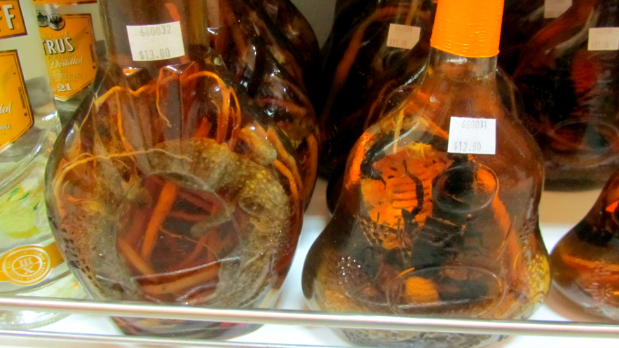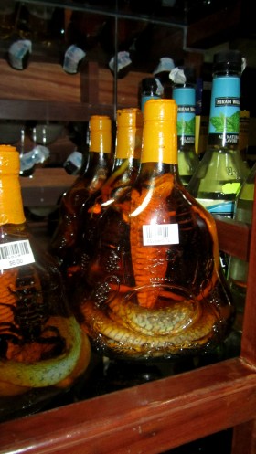 Рядом продуктовый магазин, где можно купить спирное по самой низкой цене в городе. Также есть напитки со змеями и скорпиоными внутри бутылки, но пить их не рекомендуют, это скорее сувенир. чем продукт для употребления.