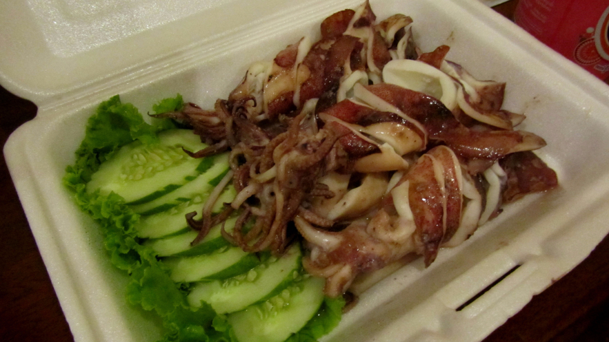 Также практически все морепродукты жарят на гриле. Жаренные кальмары 5 долларов.