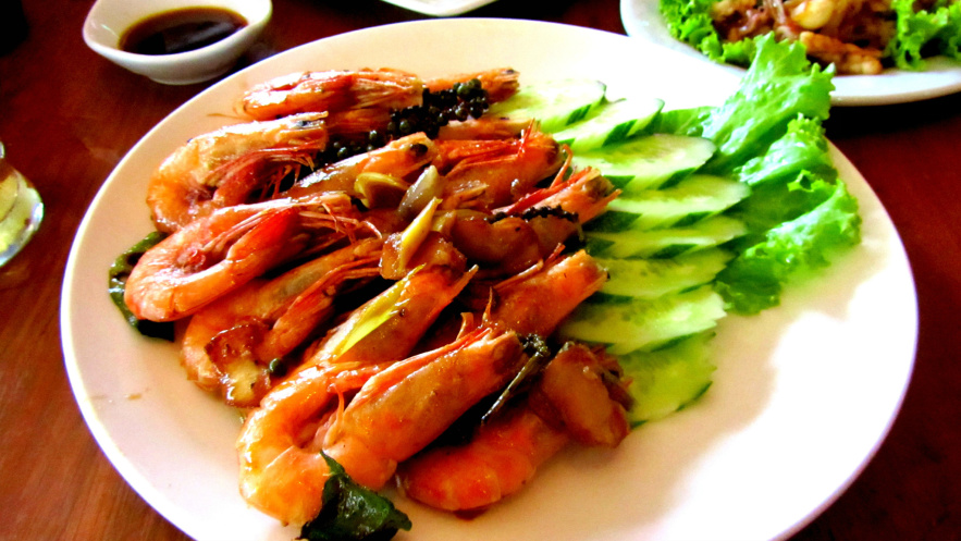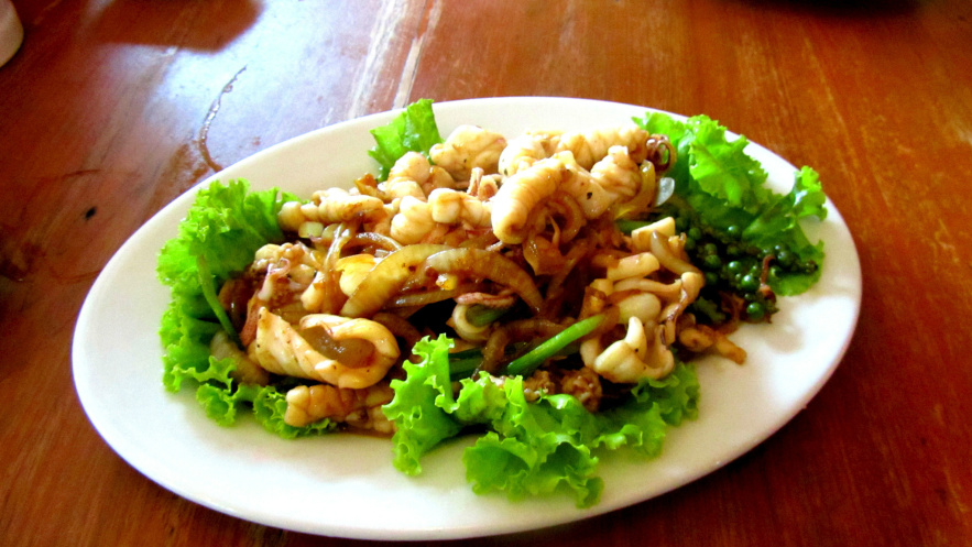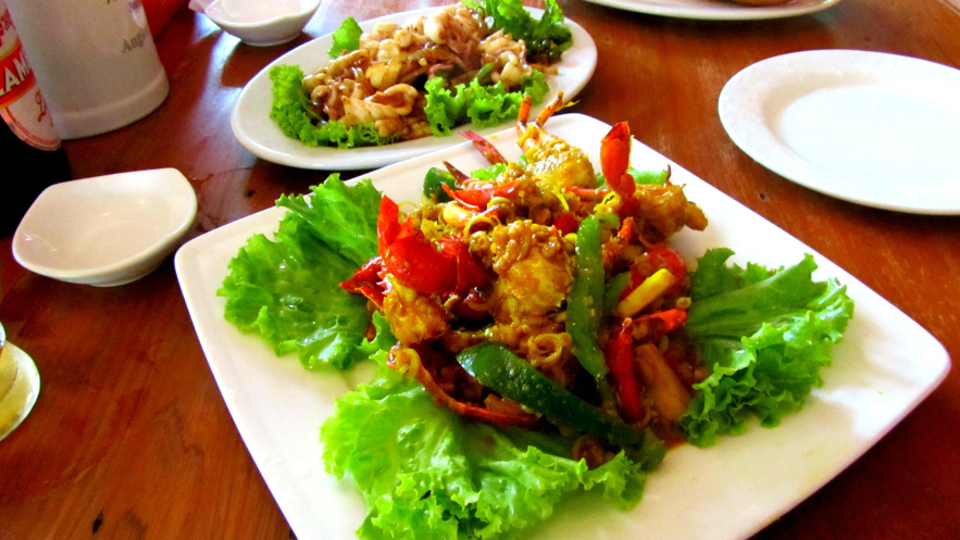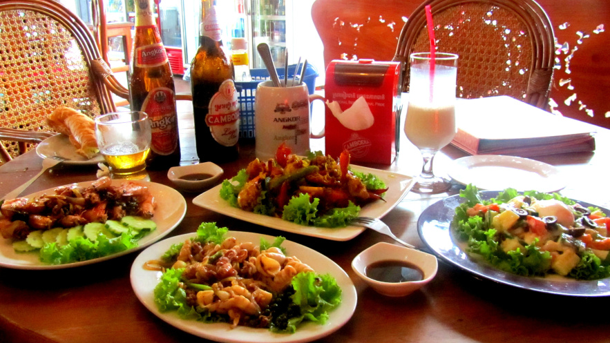 В Сиануквили огромное количество кафе, на любого изысканного почитателя, азиатской кухни. Поэтому мы ходили, через дорогу в небольшой ресторан, расположенный под открытым небом, с прекрасным администратором, который говорит на английском языке, с богатой кухней морепродуктов и свежего пива (благо завод по производству пива находится в Сиануквиле).