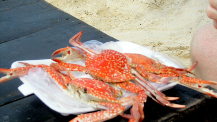 За не большую цену, прямо на пляже продают, уже отваренных крабов к пиву. Цена на крабы зависит от размера, маленькие по5-6 долларов, как на снимке 8-9 долларов, большие от 10 и выше.