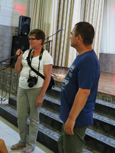 Первыми Сергей пригласил на сцену наших гостей из Германии- Катарину и её дочь Тамару. Сергей очень просил меня привезти их в Златоуст, чтобы они выступили перед детьми и рассказали о своей школе ( Катарина преподаёт немецкий язык, Тамара школьница, ей 16 лет). Девушки долго сопротивлялись, не хотели ехать с нами, стеснялись. Но Сергей был настойчив, и мне удалось их уговорить. В итоге они остались очень довольны поездкой.