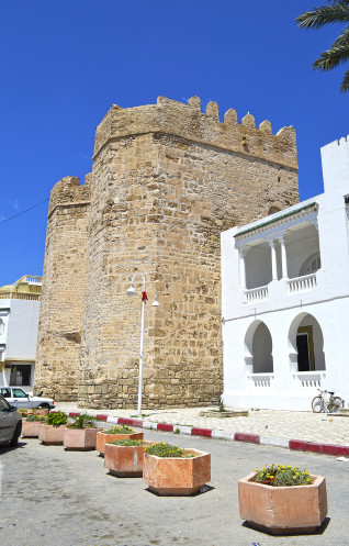 Это укреплённые ворота, которые когда-то были соединены со стеной, окружавшей Махдию.Старый город весь умещается на мысе Африка. Ворота также были единственным входом в город.