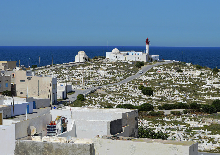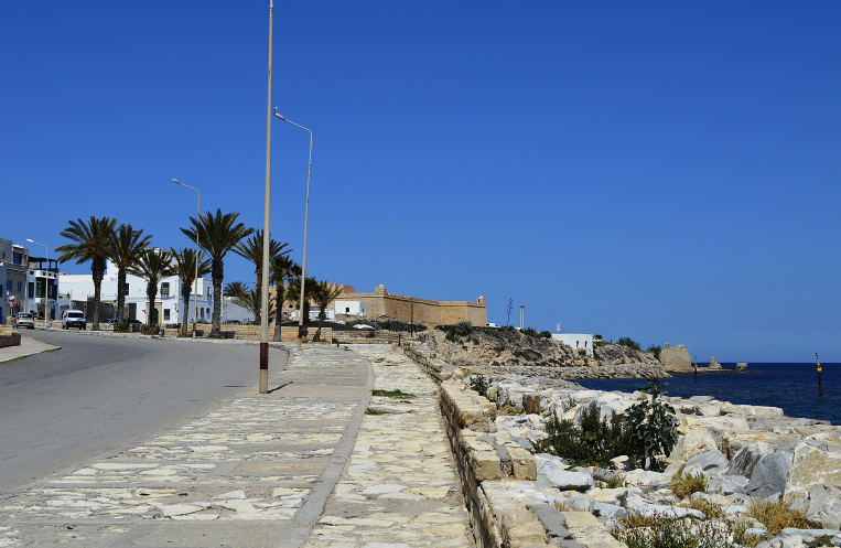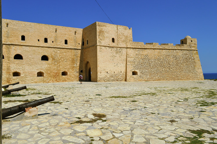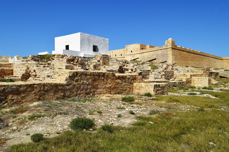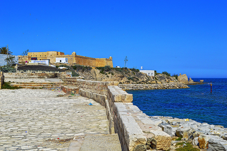 На холме полуострова, на мысе Африка ,расположилась крепость Бордж эль-Кебир.
